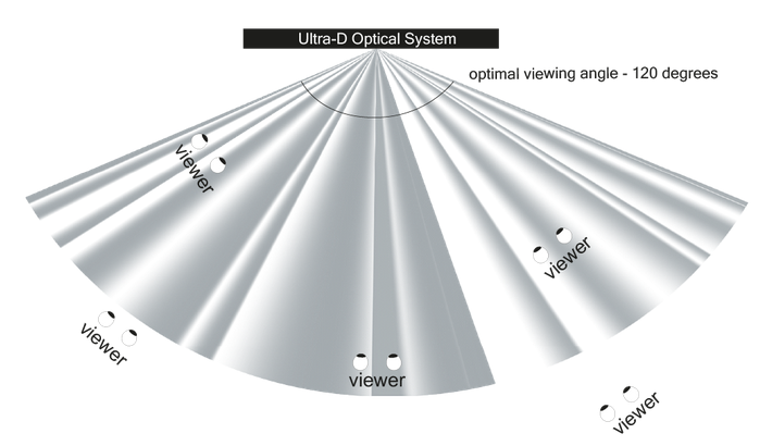 The technology does not use head or eye tracking sensors, so there is no limitation to the number of viewers and no fixed viewing position with respect to the screen.