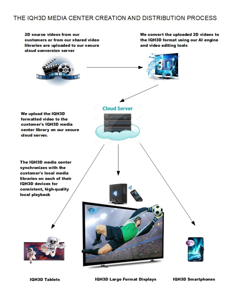 - Electronic delivery of your converted IQH3D formatted content from the cloud to your local IQH3D device’s media center library for consistent, high-quality local playback